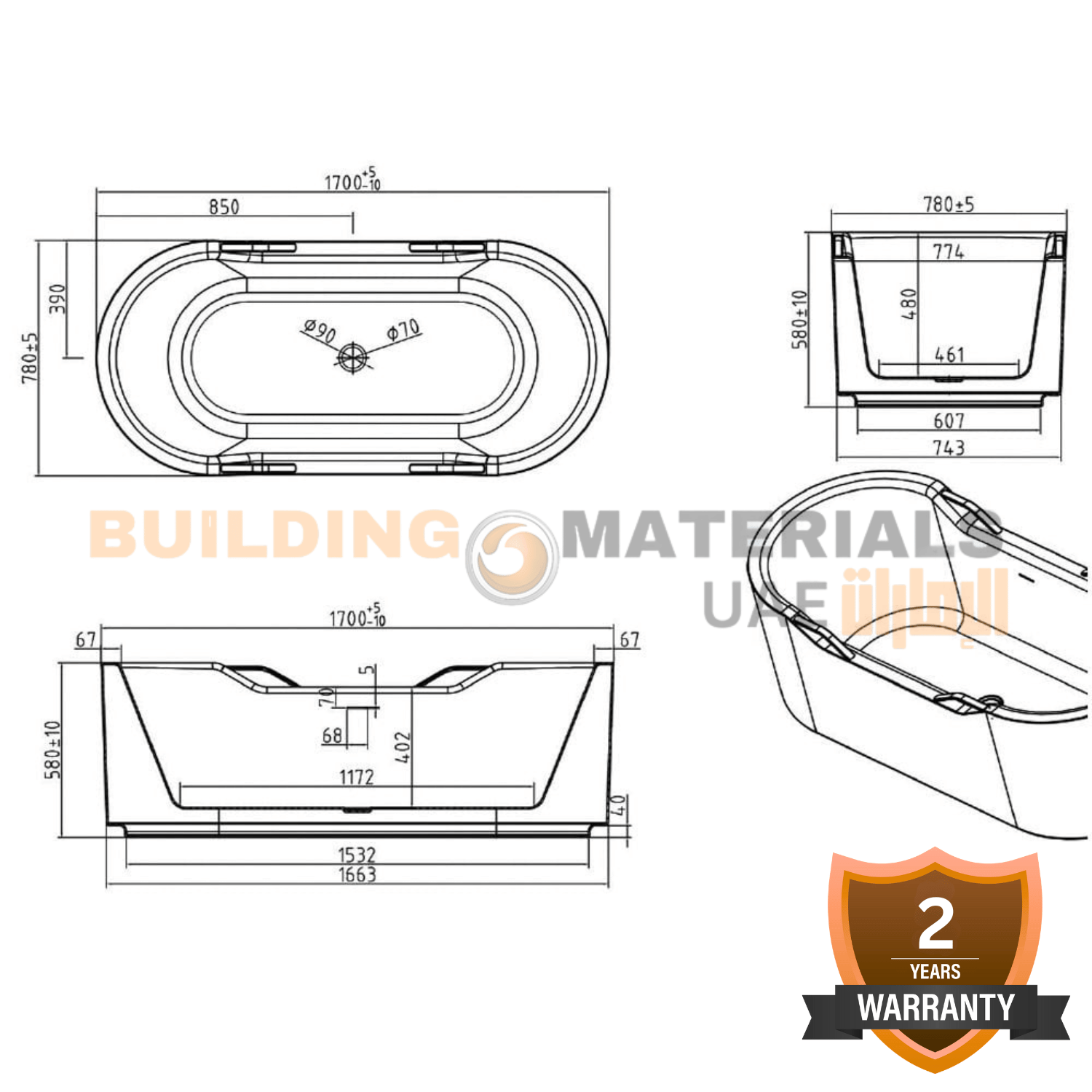 | Acrylic | Glossy White | 2 Years | 140 kg | Bathroom/Indoor |